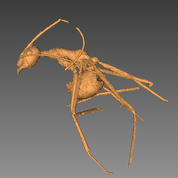The posture itself is so strange—almost as if this ant were running, frozen in a snapshot right at the finish line of an Olympic race… But you may remember from day 106 when I talked about the AntScan project that the original animal was frozen in time, just as it died, in a glass vial.